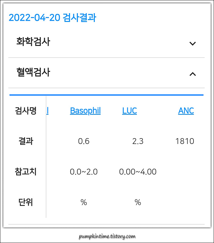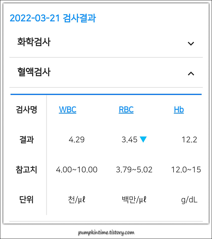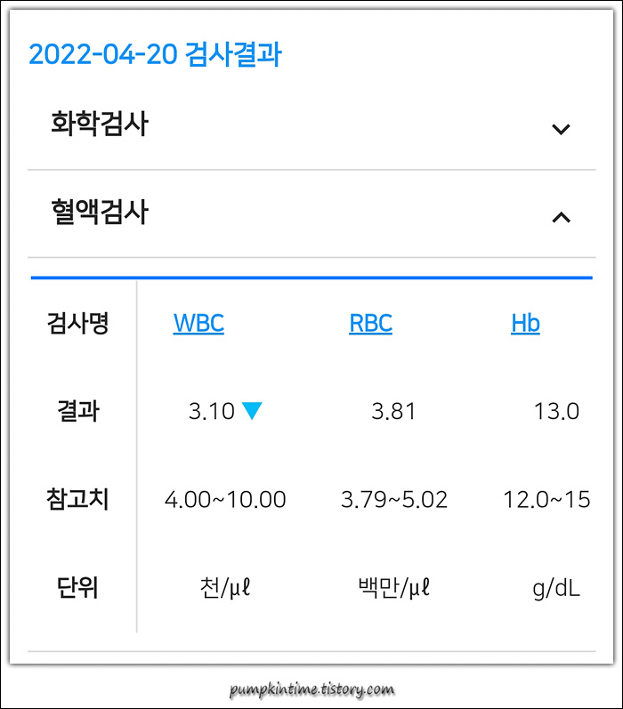 백혈구, 적혈구, 호중구 수치 모두 양호했다.