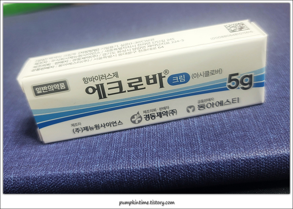 선생님께서 그렇게 심하진 않아서 일단 약만 바르자고 하시며, 에크로바 크림(Aclova Cream)을 처방해주셨다.